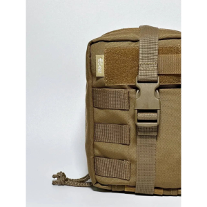 На тильній стороні розташована система швидкого скидання підсумка на липучці Velcro, яка додатково закріплює підсумок завдяки невеликому нейлоновому фастексу на передній частині.