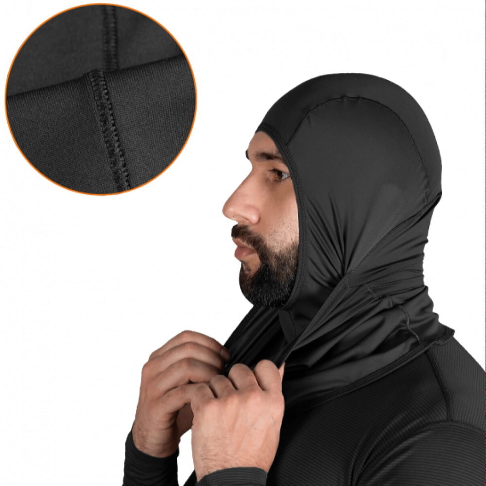 Нижня частина балаклави рухома, що дозволяє легко та швидко регулювати посадку на голові та змінювати конфігурацію носіння. Її можна використовувати як підшоломник, шапку, маску чи баф.