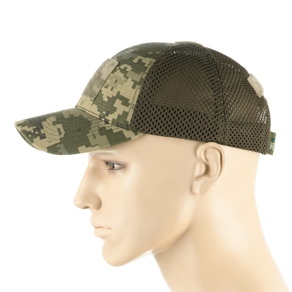 Бейсболка пошита з легкої повітропроникної тканини Rip-Stop (бавовна, поліестер). Жорсткий козирок добре тримає форму та забезпечує максимальний комфорт при використанні. Зверху бейсболки, а також на передній та задній частинах, розташовані велкро-панелі для кріплення ідентифікаторів та патчів. Об'єм бейсболки регулюється за допомогою велкро-липучки.