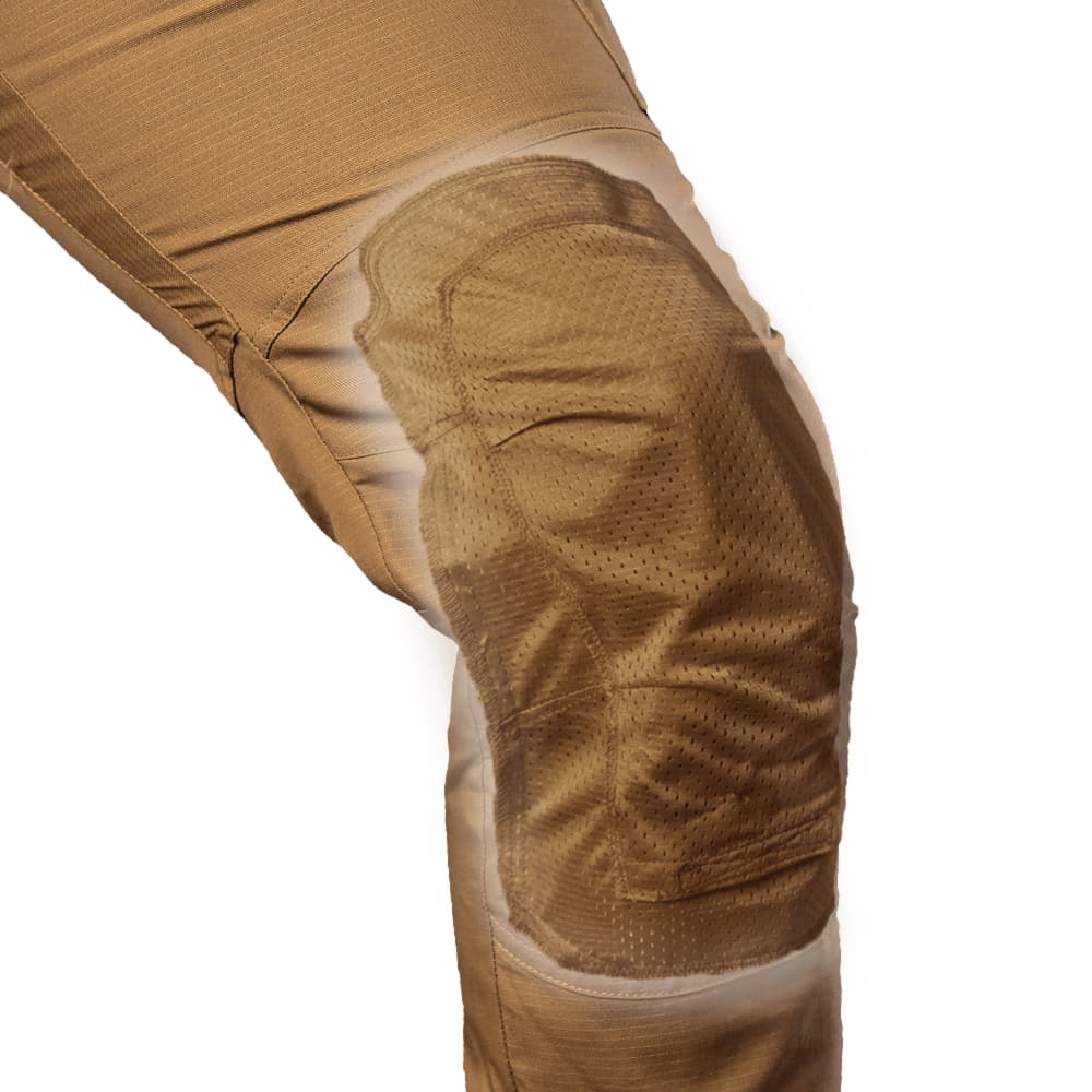 - З внутрішньої сторони в області колін розташовані спеціальні кишені з сітки для вставки наколінників. Самі наколінники, виготовлені з EVA-піни, входять у комплект.