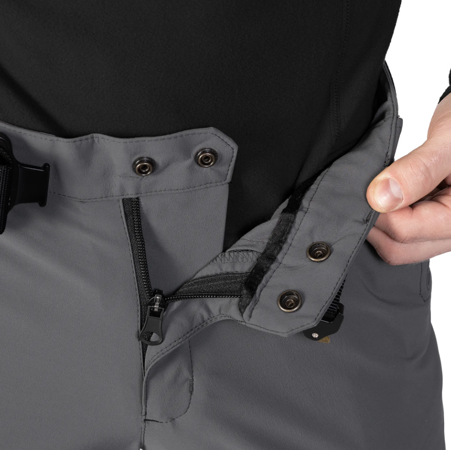 Штани мають 6 кишень: 2 бокові з вентиляційними сітками; 2 задні з вентиляційними сітками; 2 місткі на стегнах із блискавкою та клапаном.