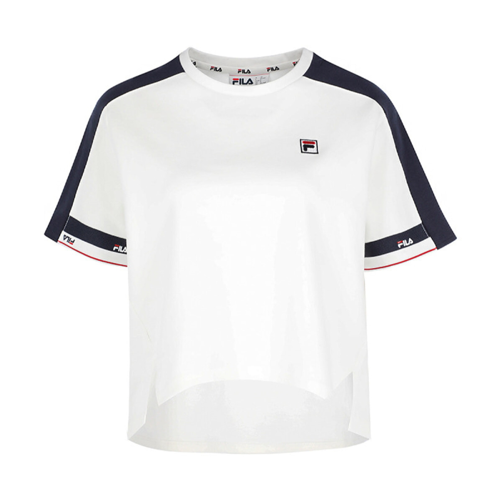 Футболка FILA з декоративною тасьмою на рукавах виконана в спортивному стилі бренду.