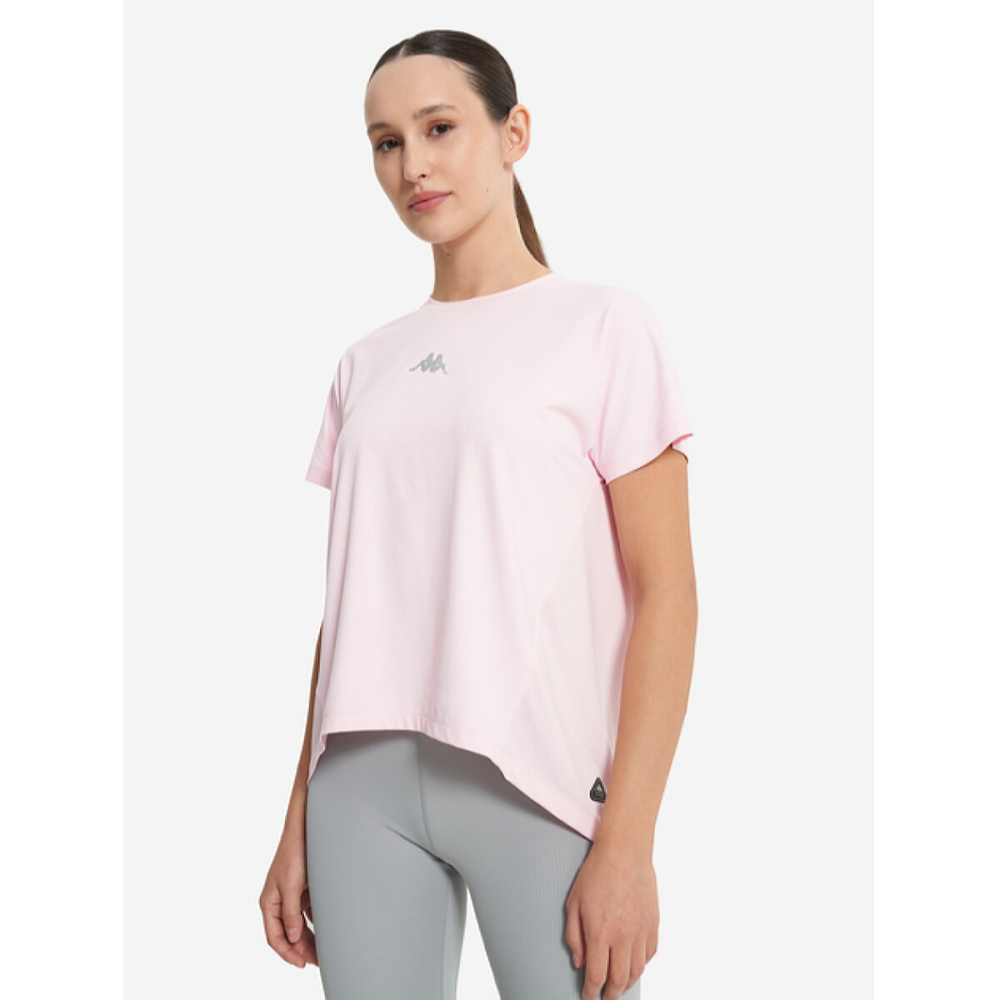 Спортивна футболка для бігу жіноча Kappa — ідеальний вибір для активних тренувань. Виготовлена з поєднання поліестеру та еластану, вона забезпечує комфорт, зручність і вентиляцію. Вільний крій гарантує свободу рухів.