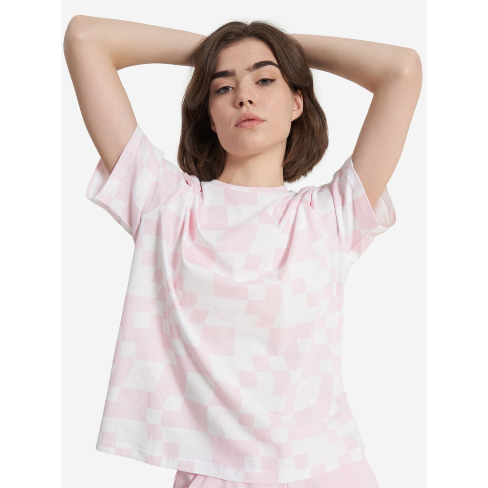 І щоб вибігти за кавою, і щоб вирушити на вечірку. Вільна футболка з принтом у клітку та фірмовим логотипом ідеальна для будь-якого випадку.