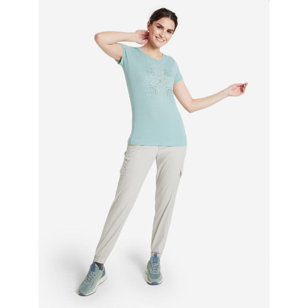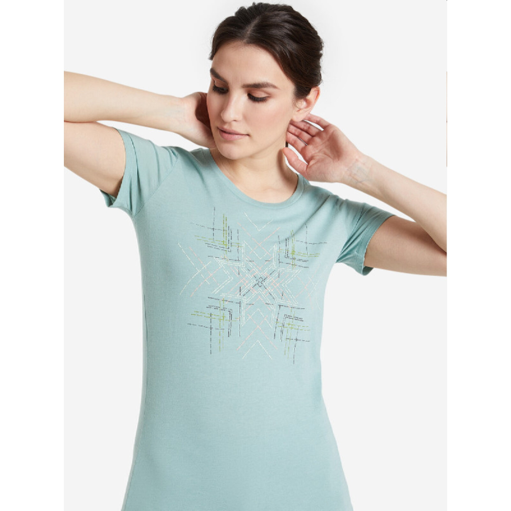Футболка, виготовлена з тканини з високим вмістом бавовни. Особливості: приталений крій, короткий рукав.