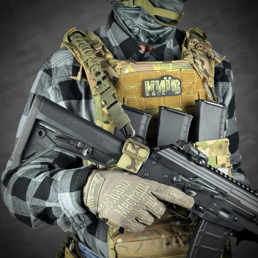 Технологія Tank Track® *Металеві заклепки* надійніші за нитки в умовах постійного тертя, що передбачається при переносі та використанні зброї. |