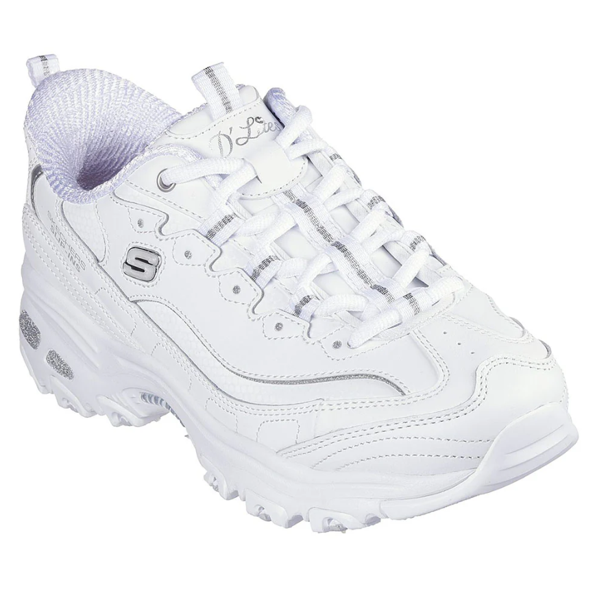 Відчуйте спортивний стиль та легкий комфорт зі Skechers Hands Free Slip-ins®: D'Lites® - переможний вибір. Розроблені з нашою ексклюзивною подушкою для п'яти Heel Pillow™, ці кросівки класичного силуету мають верх зі шкіри та сітки зі шнурівкою, а також м'яку устілку Skechers Air-Cooled Memory Foam®.