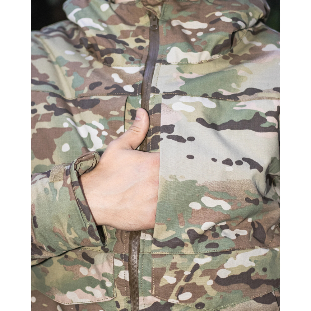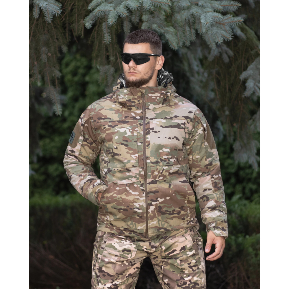 - Основна тканина куртки - ріп-стоп на основі армованих ниток з водовідштовхуючим просоченням, що запобігає швидкому намоканню куртки від води чи снігу;
