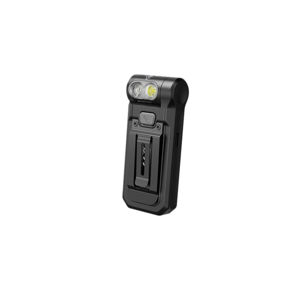 Нахил головної частини корпусу регулюється на 200°, дозволяючи виставляти промінь у зручному для вас напрямку. Подвійний затискач підвищує функціональність пристрою: ви можете кріпити його до козирка кепки, лямки рюкзака, кишені одягу або пояса. У хвіст вбудовано магніт для фіксації конструкції на металевій поверхні.