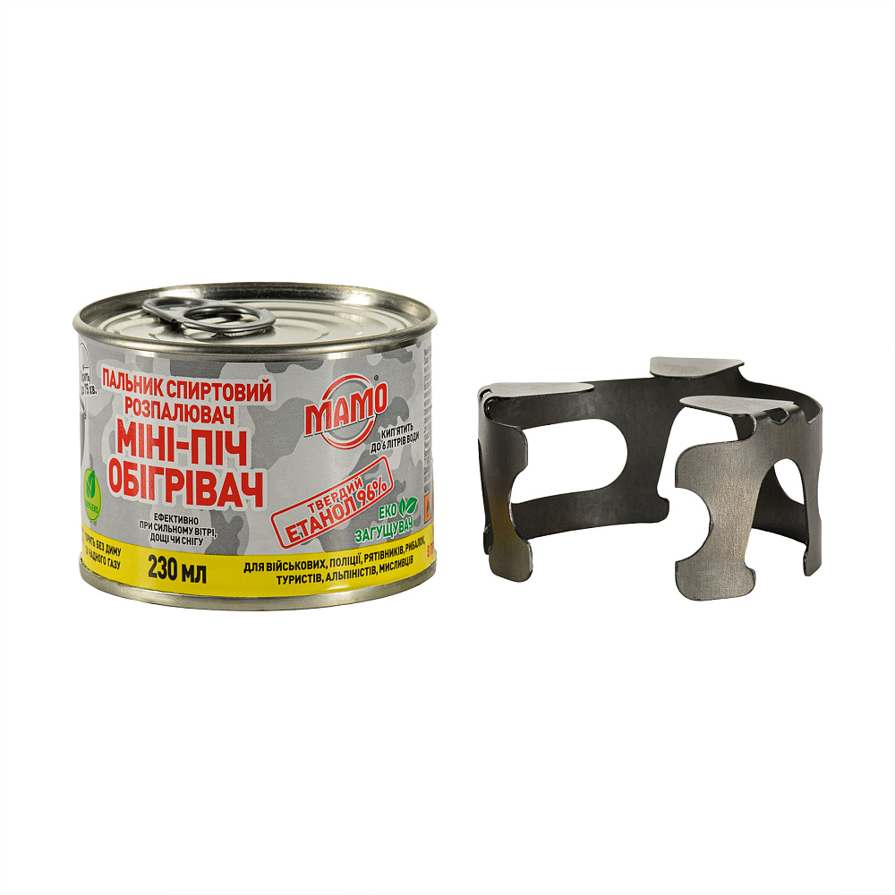 - Спиртовий пальник міні-піч обігрівач МАМО, 230мл - горить 55-75 хвилин, кип'ятить до 6 літрів води.