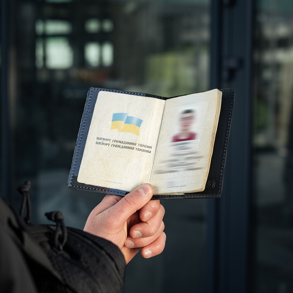 Обкладинка виготовлена з натуральної шкіри. Цей матеріал, часто використовується для виготовлення гаманців, обкладинок та картхолдерів, адже володіє винятковою стійкістю до стирання, міцністю та довговічністю. Метод нанесення малюнків та написів - тиснення.