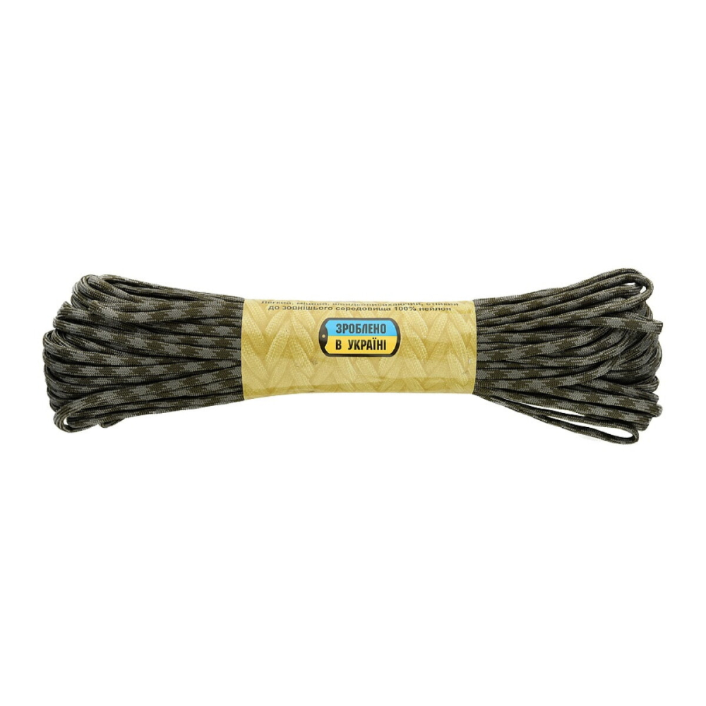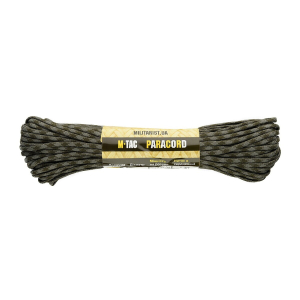 M-Tac паракорд 550 type III - це нейлоновий шнур, який складається із зовнішнього обплетення (велика кількість переплетених волокон) та осердя (кілька нейлонових ниток, переплетених між собою), що забезпечує його міцність і невелику вагу.