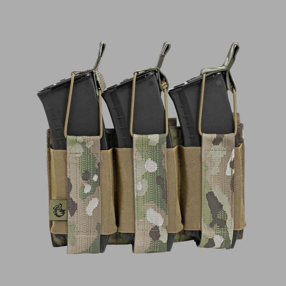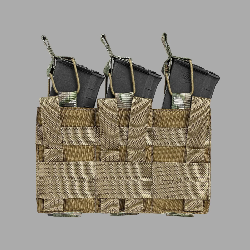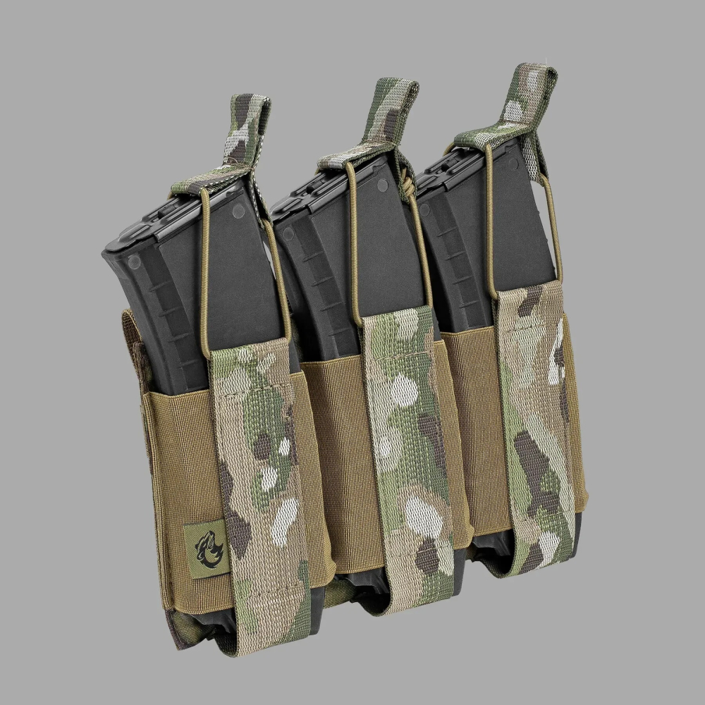 Відкритий підсумок надійно зафіксує 3 магазини на бронежилеті чи розвантажувальній системі. Модель універсальна - підходить для магазинів системи AR та AK. Конструкція підсумку дозволяє кріпити його в будь-якому зручному місці. Магазини легко вставляються і закріплюються резинкою стяжкою. Відкритий підсумок виготовлений з міцних та стійких до стирання матеріалів: кордури 1000D, полікордури, поліамідної стропи та 100 мм резинки з еластану.
