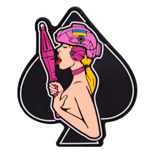 У часи Другої світової війни великої популярності набув стиль американскої культури Pin-Up. Відверті красуні з ефектним макіяжем, зачіскою та мінімалістичним вбранням, максимально підкреслюючим жіночність, прикрашали танки, літаки та снаряди американських солдатів. Навіть куртки пілотів були розписані дівчатами в образі Pretty Girls. Надихнувшись образами Pin-Up культури часів Другої світової війни, ми зробили власний ПВХ шеврон «Дівчина-піка», на якому красуня в касці посилає пристрасний «Привіт» окупантам, у вигляді бойового снаряда. Приваблива, харизматична та незалежна дівчина «Дівчина-піка» є уособленням краси, міцності й сили наших жінок на фронті та в тилу. До замовлення доступні шатенка, блондинка, руда та ПВХ патч «Дівчина-піка» в рожевому дизайні.