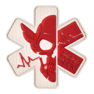 Парамедики – безстрашні профі, завдяки яким тисячі українських захисників повернуться до своїх родин. Їх основна задача – якнайшвидше вивезти поранених із зони бойових дій, стабілізувати їх стан та доправити у безпечне місце. Кожен раз – це величезний ризик та справжній подвиг у боротьбі за життя воїнів. ПВХ шеврон «Парамедик» створений з пошаною до безцінної роботи парамедиків. На фоні символічного червоного хреста – череп з крилами та пульсуюча лінія життя.