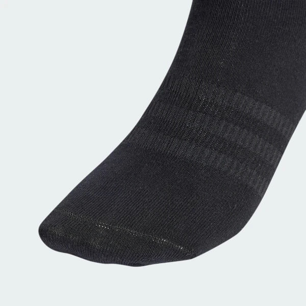 Ці легкі шкарпетки з підтримкою склепіння, безшовним шкарпетковим швом і невеликою розтяжністю ідеально підходять для повсякденного використання. На щиколотці виділяється контрастний спортивний значок adidas. Три штуки в пакуванні, тож ти ніколи не залишишся без пари, якщо одна пара потрапить у прання. Виріб щонайменше на 50% складається із суміші перероблених і поновлюваних матеріалів.