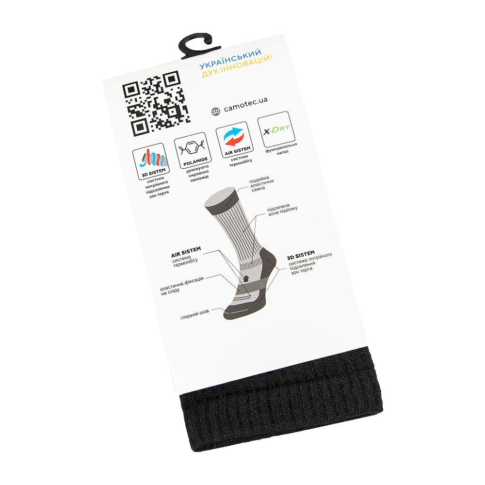 - Система терморегуляції: вентильовані зони у верхній частині шкарпетки для збереження комфортного терморегулювання навіть в спеку.