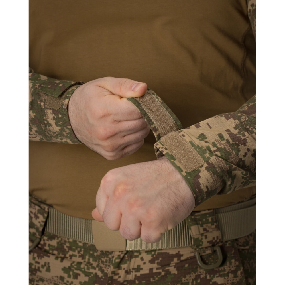 - Функціональні кишені на рукавах з клапанами + липучки для патчів, шевронів.