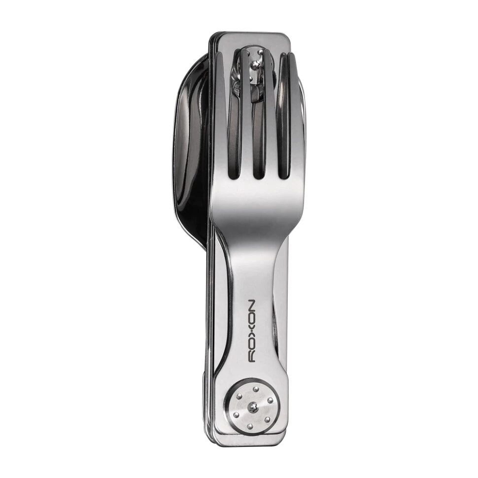 Кишеньковий набір Roxon C1S складається з трьох столових приборів: ложки, виделки та ножа, дозволяючи з комфортом насолодитися улюбленими стравами навіть вдалині від дому. Це вдосконалена версія базового комплекту C1 зі змінами у вигляді збільшеної глибини ложки та ширини виделки, а також наявності замка liner lock, який є у кожному столовому приборі, не даючи їм скластися під час використання.