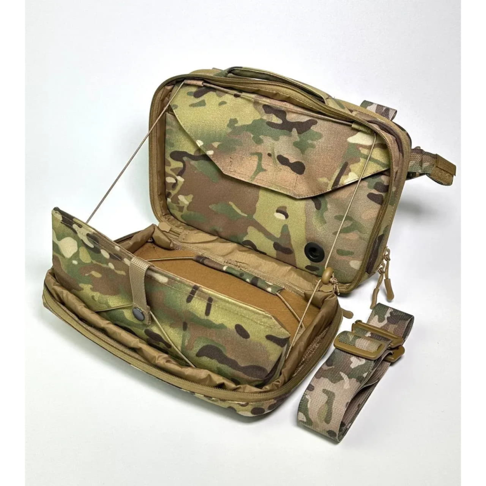 Зовнішня частина підсумка оснащена велкро-панеллю для кріплення патчів або ідентифікаторів.